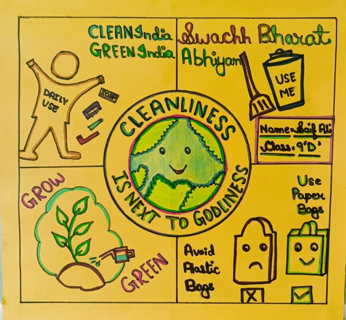 basis of this ,children were also made to write slogans related to cleanliness on the