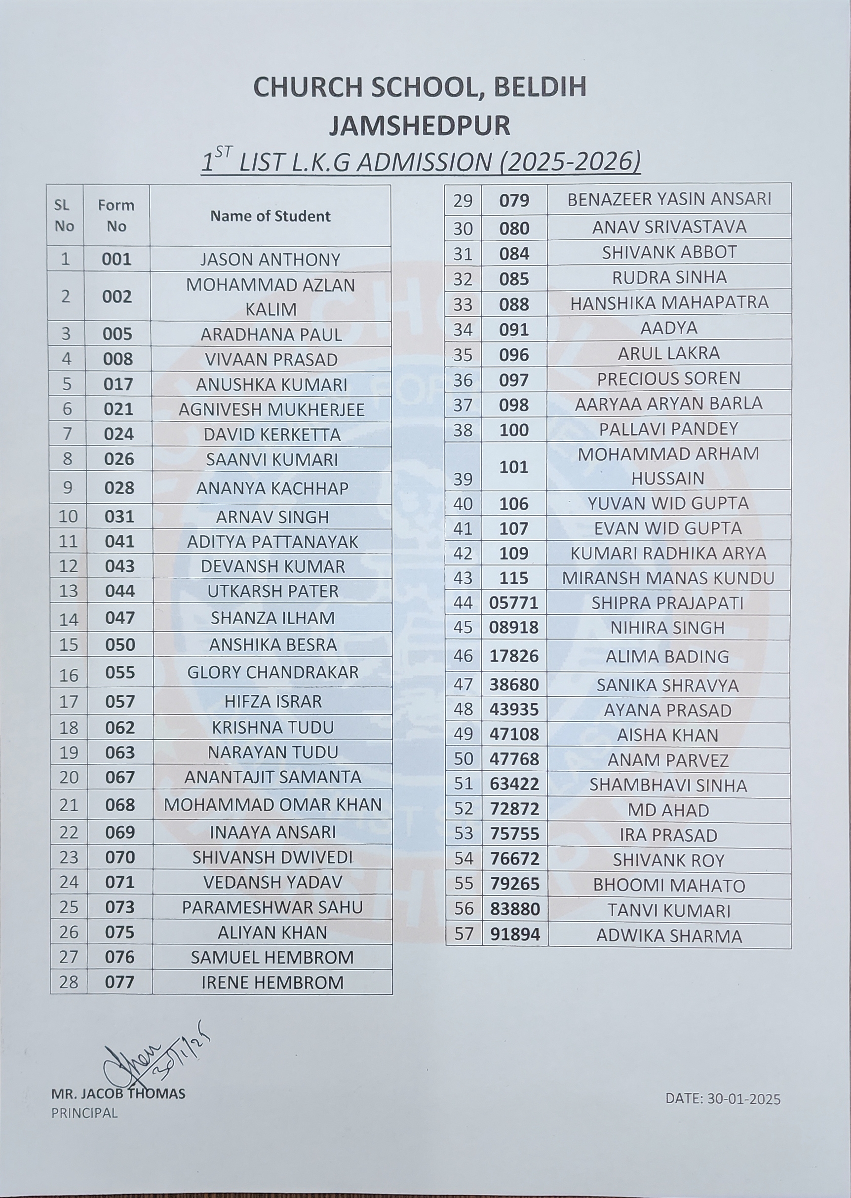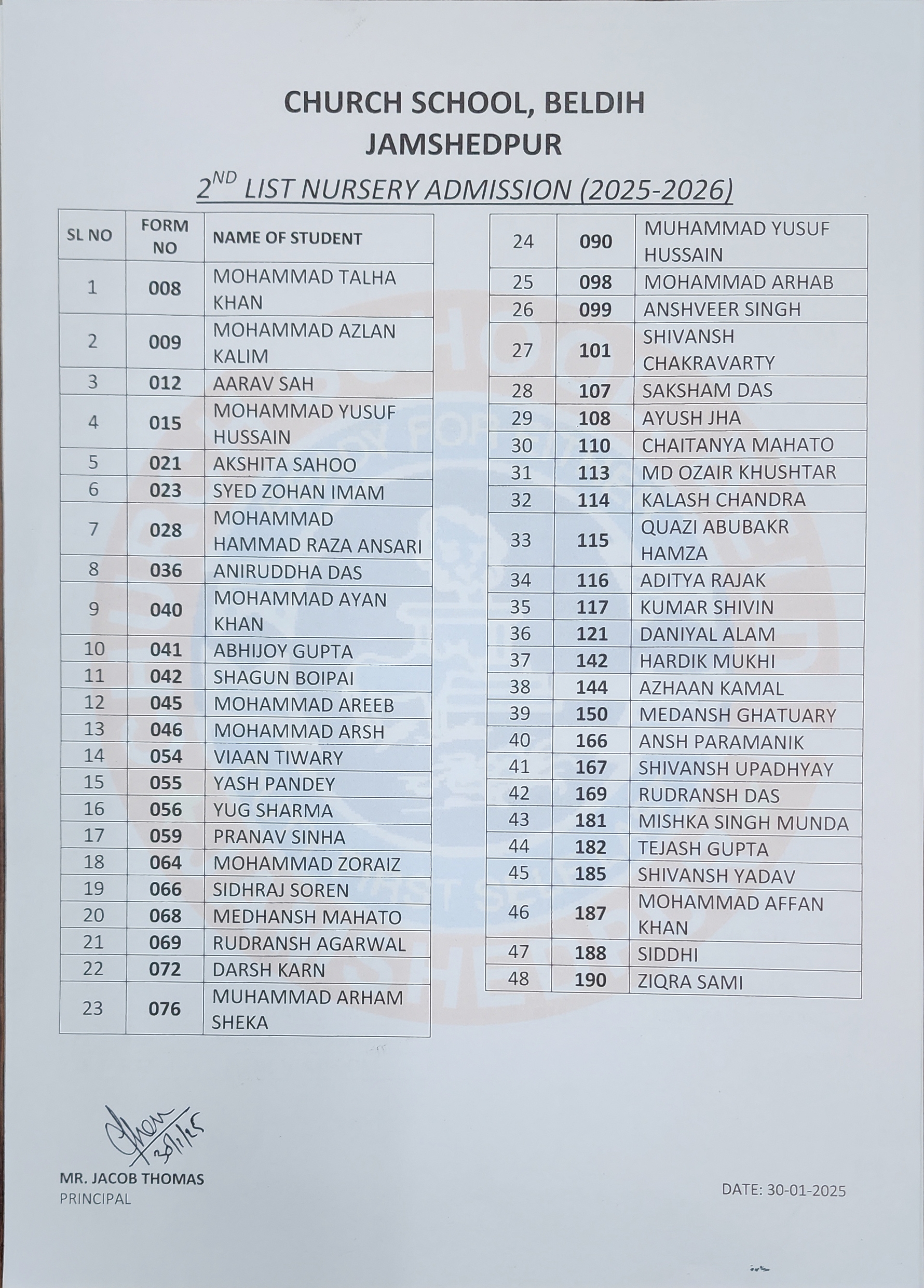 We are pleased to announce the release of our second admission list for Nursery and the first list of LKG classes. Please find the list of selected candidates below.
