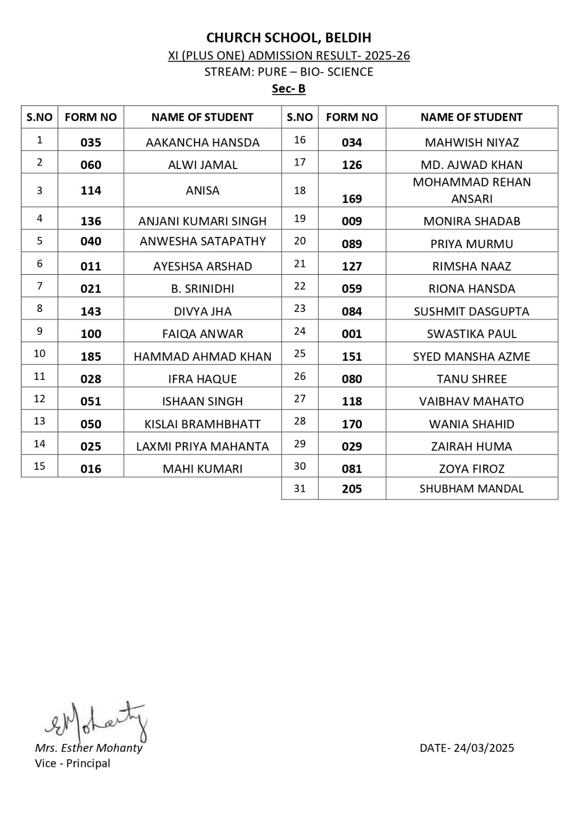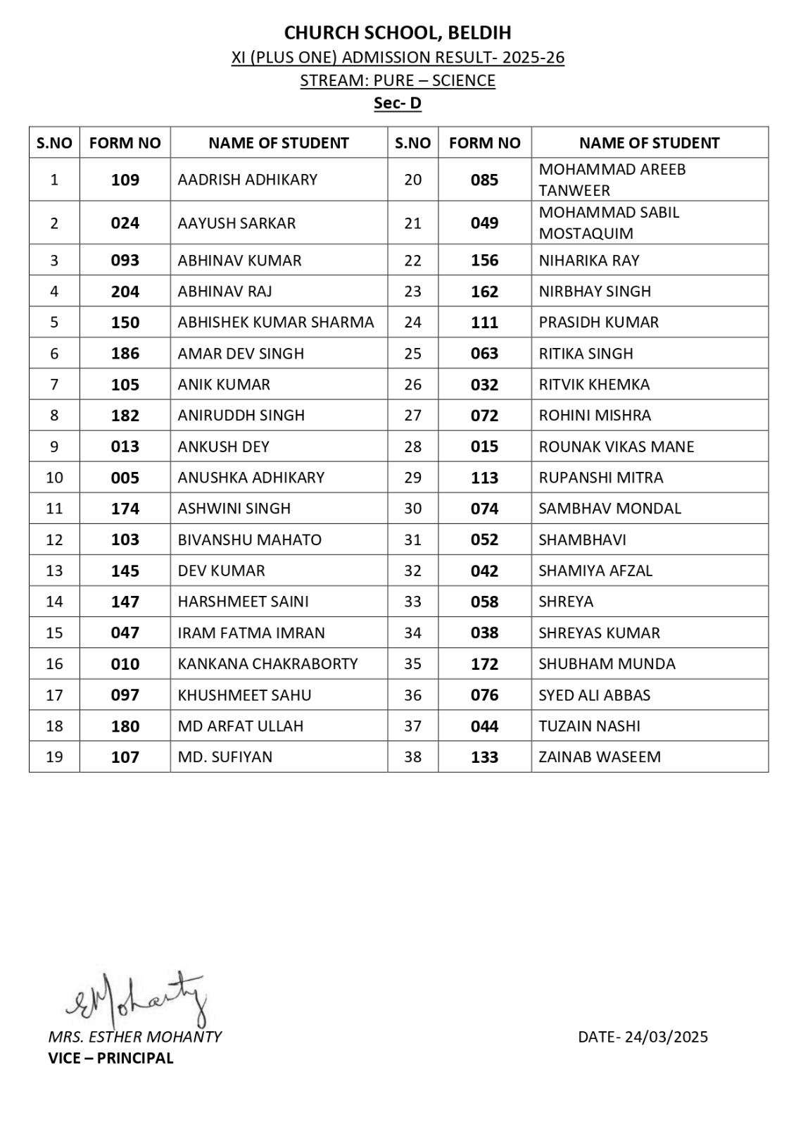 We are pleased to inform you that the Admission List for XI (Session 2025-26) is now available. You can check or download the list.