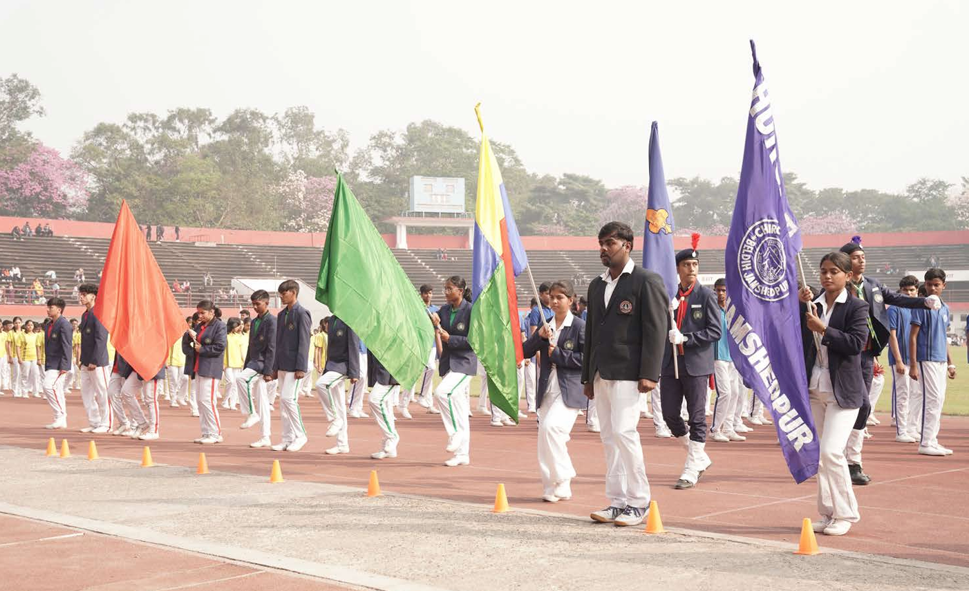 The Chief Guest hoisted the School Flag, after which students of Std. VII–XII presented a disciplined March Past. The ceremony included the assembling of flags, lighting of the sports flame, and the oath ceremony. Drill displays by Std. I–VI and track events for all classes followed, each accompanied by prize distribution.